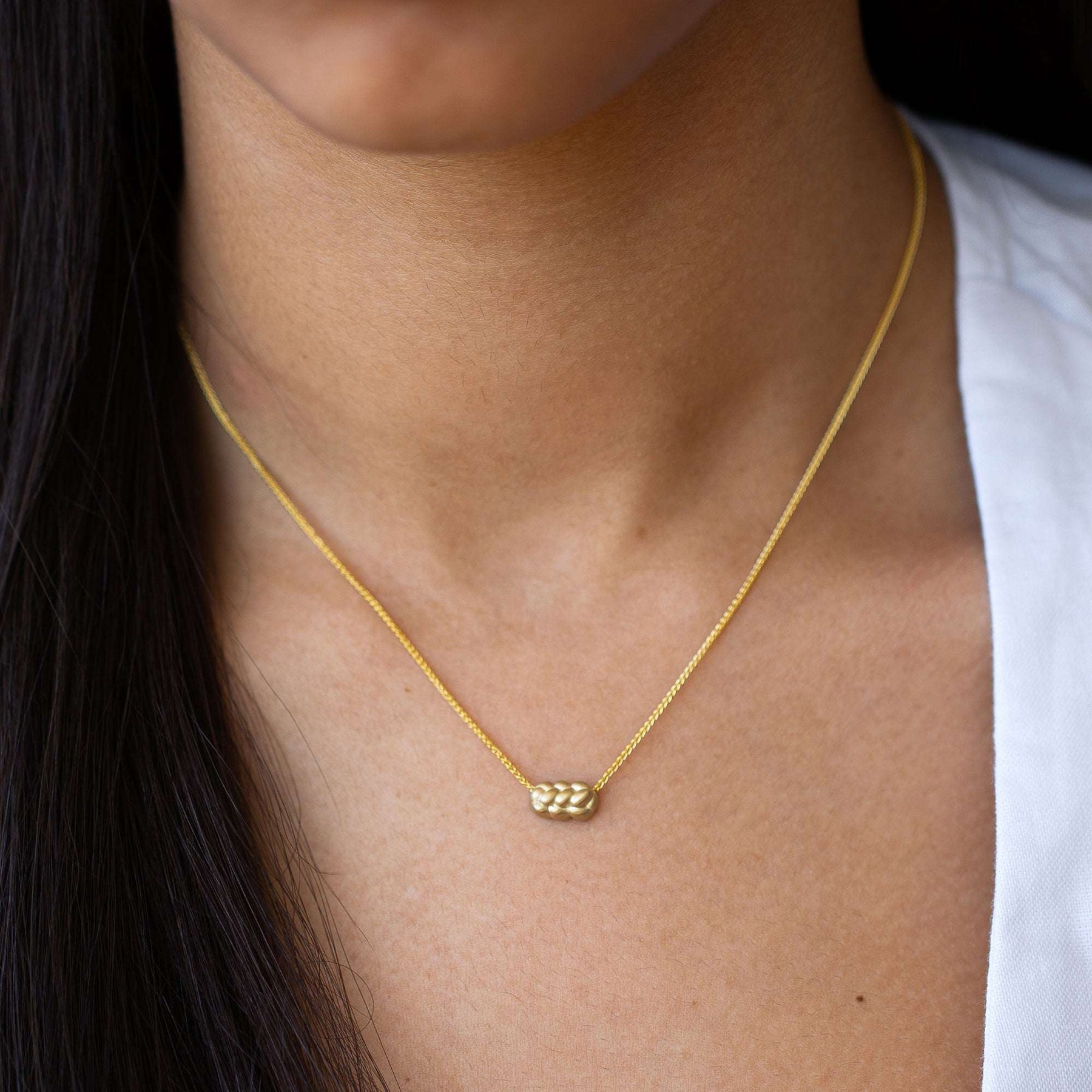 Solid Gold Knot Necklace With Unique Challah Pendant