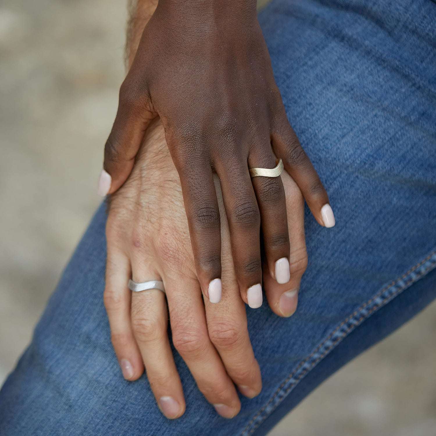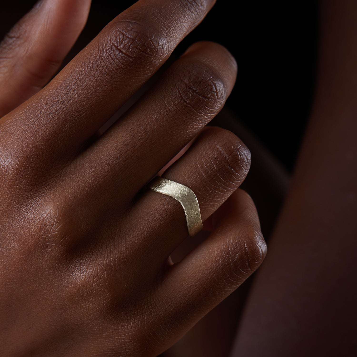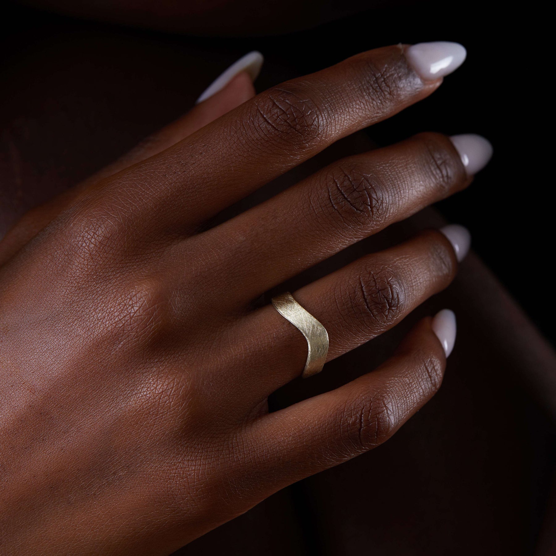 Simple and elegant 14K/18K wide wave gold band. Perfect as a stand-alone ring, or to be stacked with any ring. The ring comes in two gold finish options- shiny finish or scratched texture.
